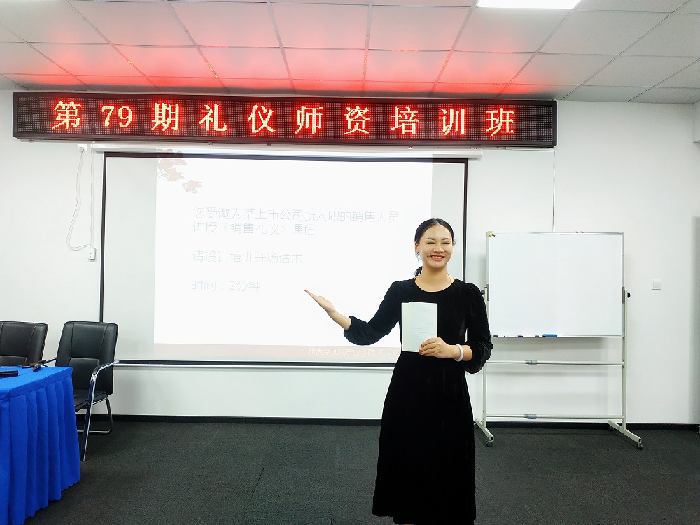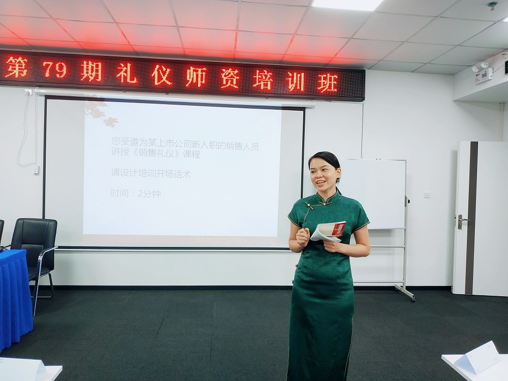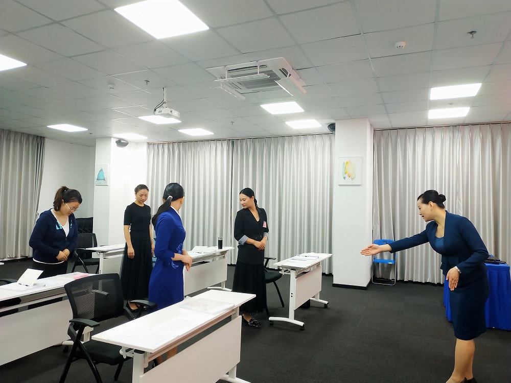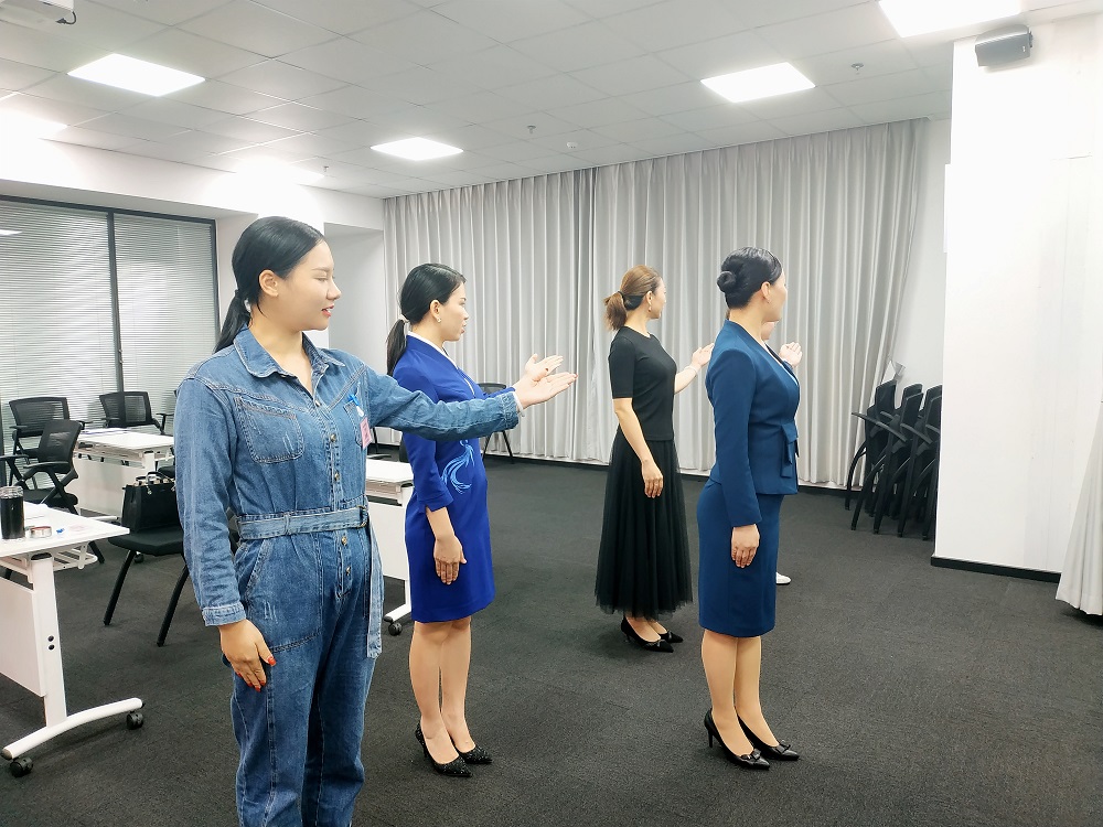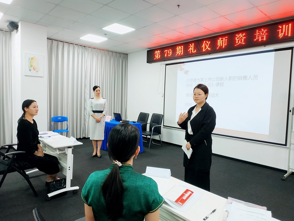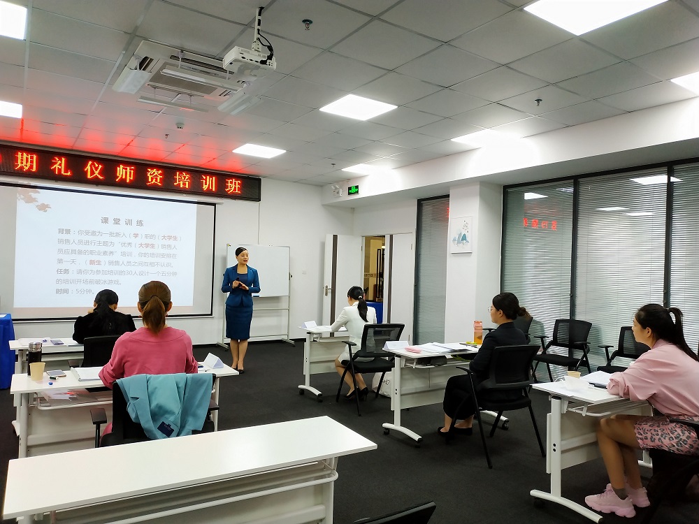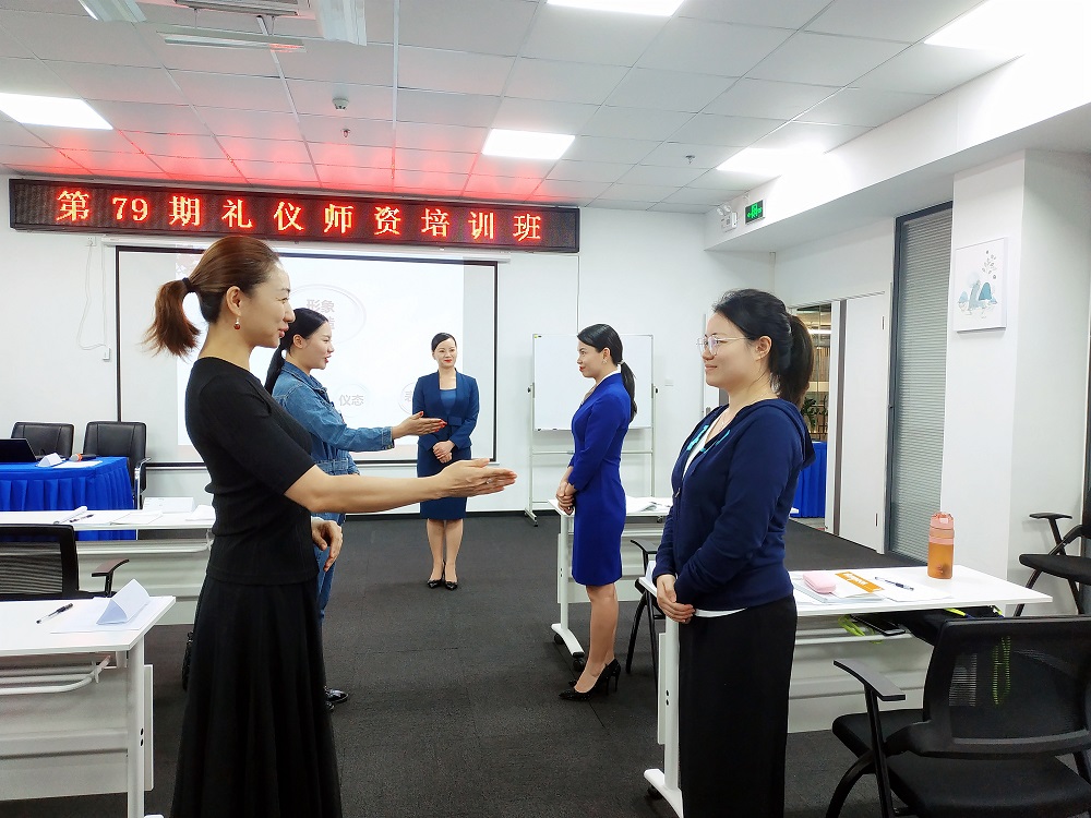 時淑妍老師為學(xué)員們講授了作為禮儀培訓(xùn)師職業(yè)風(fēng)采的禮儀細節(jié),并讓學(xué)員們逐一練習(xí),通過指導(dǎo)力求讓每位學(xué)員都能盡快掌握禮儀培訓(xùn)師的現(xiàn)場授課的風(fēng)采及技巧。